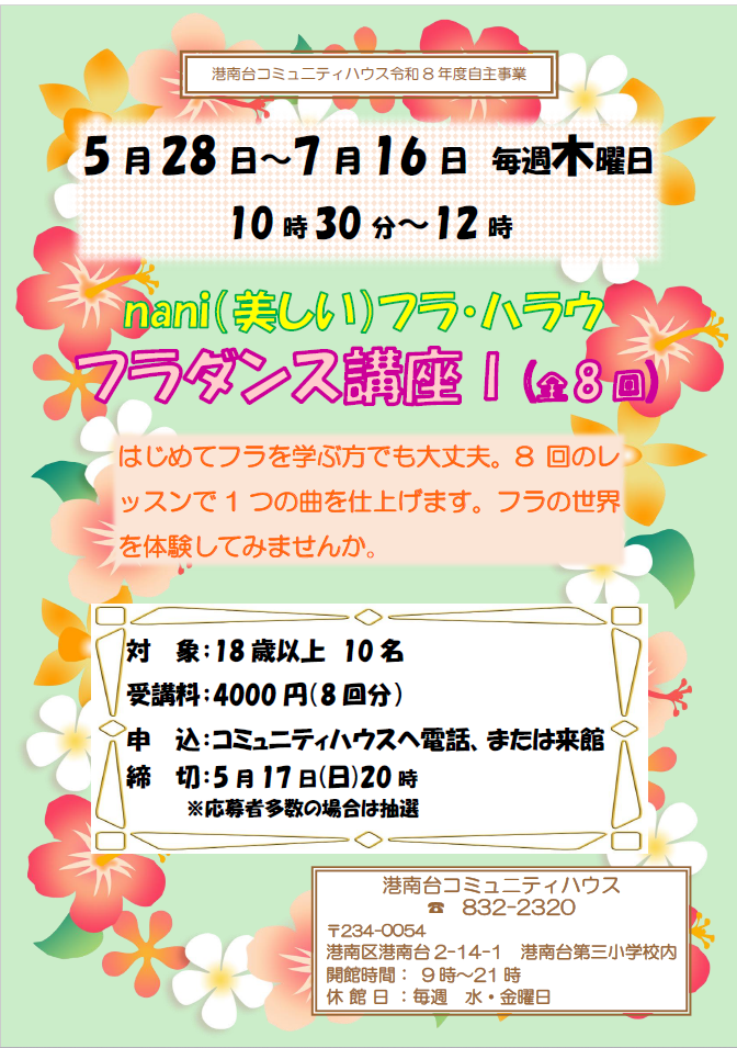 | 申込方法 | 4月12日(日)10時から電話等 |