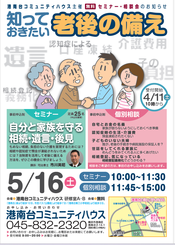 | 内容 | 自分と家族を守る相続・遺言・後見 |